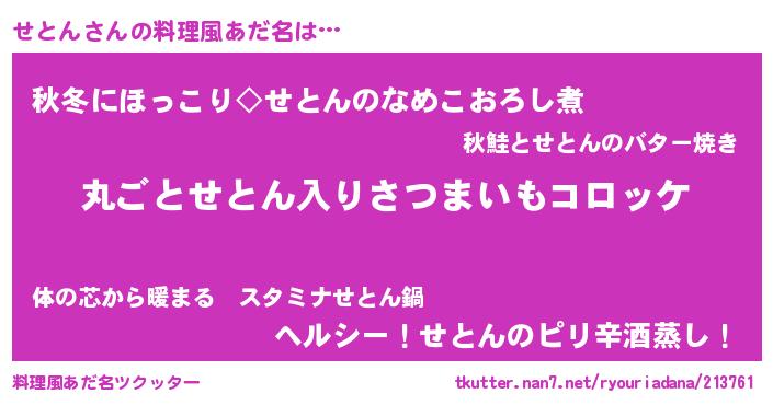 | 意味不明あだ名 | 『住所不定無職せとん(43歳)』『自称せとん』 |