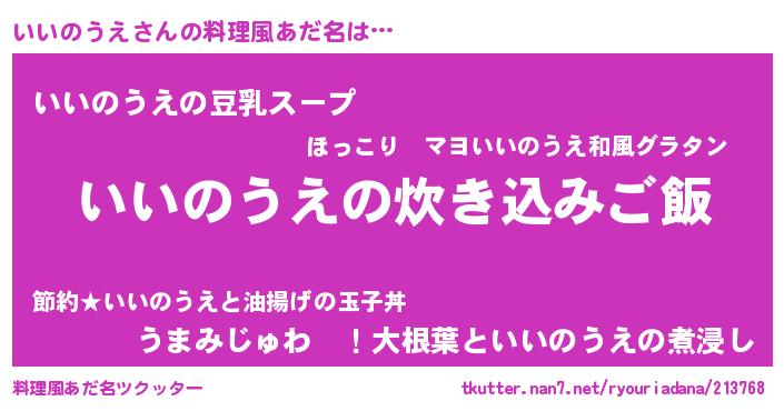 | 欧米人風あだ名 | 『いいのうえ・ステッグマイヤー』 |