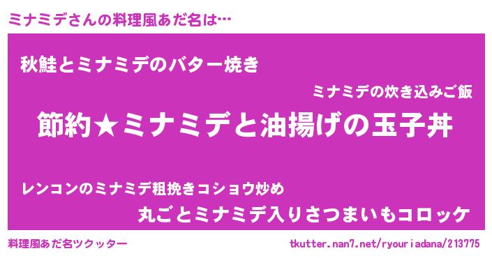| ファンタジー風あだ名 | 『ミナフェル』『ミナディッシュ』 |