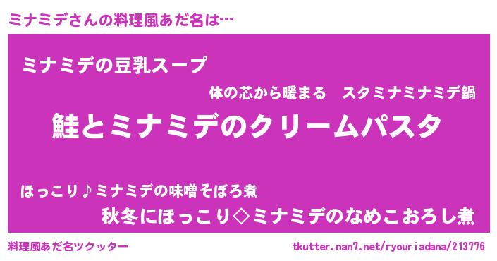 | ヘコむあだ名 | 『ミナっぺ』『つくし』『ミナにー』 |