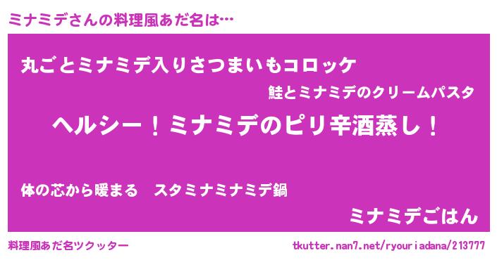 | 胡散臭い通販商品みたいなあだ名 | 『芸能人もオススメする高麗人参…その名も「ミナミデ」』 |
