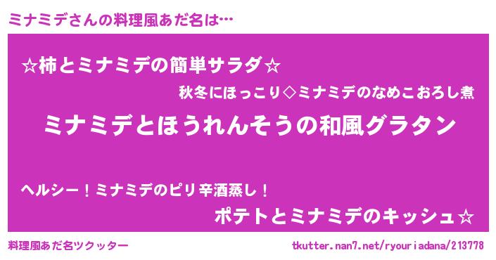 | ヘコむあだ名 | 『ミナっ子』『ミナミデ(遠い目)』 |