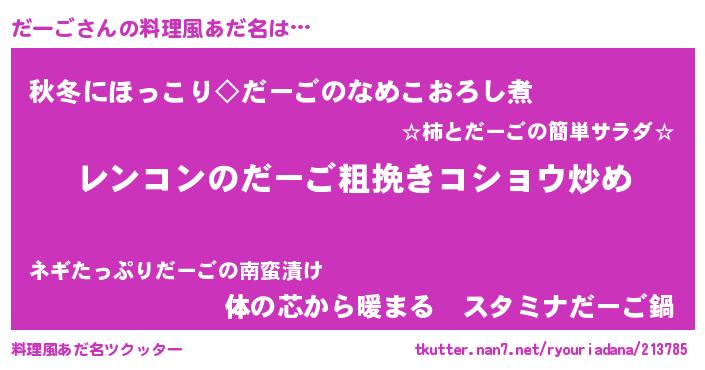 | 男性向けラノベタイトル風あだ名 | 『魔法科高校のだーご』『緋弾のダーゴ』 |