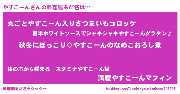 | 意味不明あだ名 | 『住所不定無職やすこーん(41歳)』 |