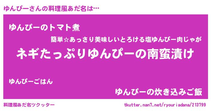 | 意味不明あだ名 | 『ペロリンゆんぴー』『永久保存ゆんぴー』 |