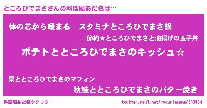 | 胡散臭い通販商品みたいなあだ名 | 『伝統あるサプリメント…その名も「ところひでまさ」』 |