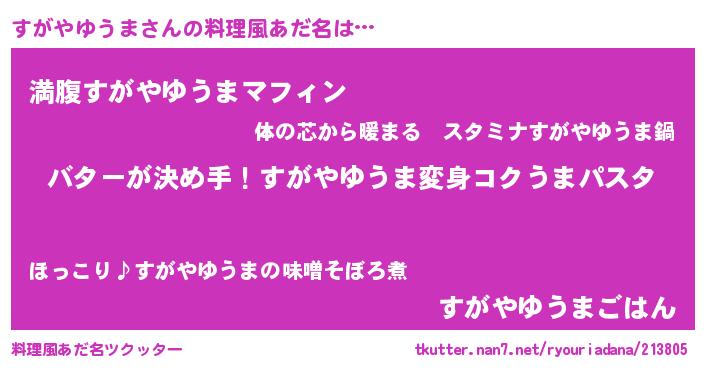 | 可愛いあだ名 | 『すがちゅっちゅ』『すがやゆうまママ』 |