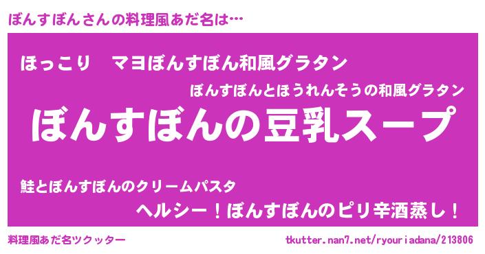 | 胡散臭い通販商品みたいなあだ名 | 『信頼と実績のサプリメント…その名も「ぼんすぼん」』 |