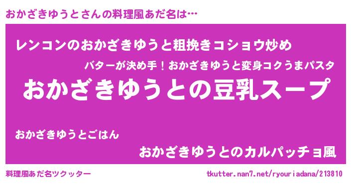 | 女子向けラノベタイトル風あだ名 | 『おかざきゆうとは平凡を望む』 |