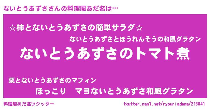 | ヘコむあだ名 | 『ないとうあずさ(小並感)』『酢こんぶ』 |