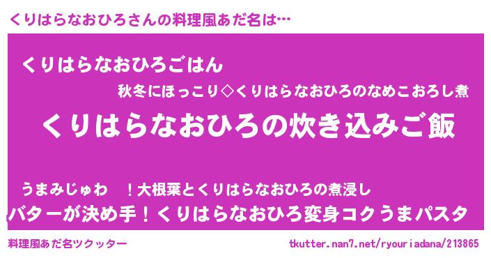 | 男性向けラノベタイトル風あだ名 | 『うちのくりはらなおひろが世界を掌握している!』 |