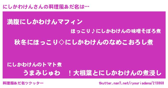 | 男性向けラノベタイトル風あだ名 | 『にしかわけんに滅ぼされるだけの簡単なお仕事です』 |