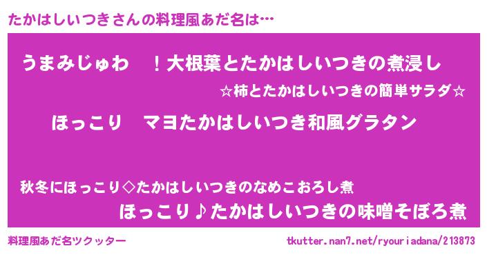 | 意味不明あだ名 | 『住所不定無職たかはしいつき(77歳)』 |
