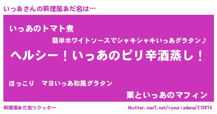 | 男性向けラノベタイトル風あだ名 | 『Re:いっあから始める異世界生活』 |