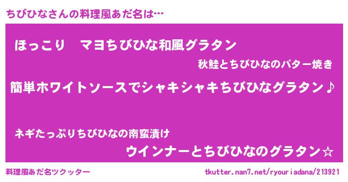 | 意味不明あだ名 | 『とにかく怪しいちびひな』 |