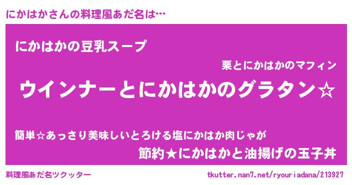 | ポケモン風あだ名 | 『ニカハダネ』『ヒニカハカ』 |
