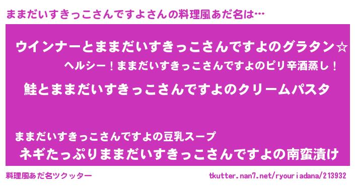 | 欧米人風あだ名 | 『ダニエルままだいすきっこさんですよ』 |