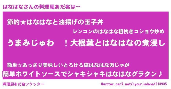 | 意味不明あだ名 | 『はなはなフォーエバー』『自称はなはな』 |