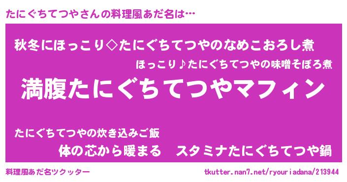 | 女子向けラノベタイトル風あだ名 | 『異世界で失敗しない100のたにぐちてつや』 |