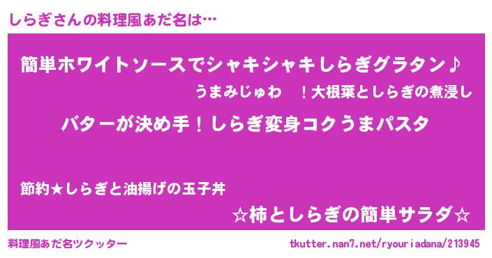 | ヘコむあだ名 | 『しらぷりん』『酢こんぶ』 |