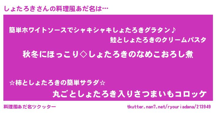 | 意味不明あだ名 | 『とにかく怪しいしょたろき』 |