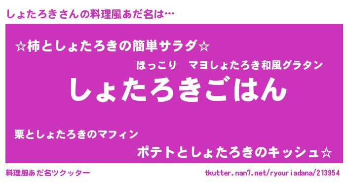 | ヘコむあだ名 | 『しょっぺ』『しょたろき(笑)』 |