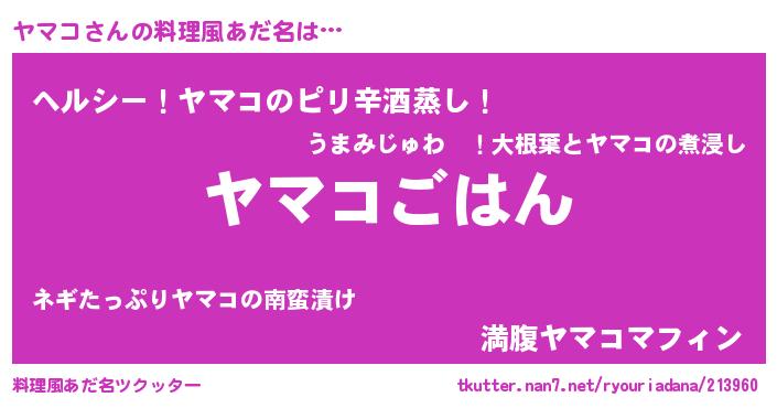 | 意味不明あだ名 | 『たけのこ科ヤマコ属』『自称ヤマコ』 |