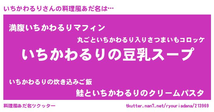 | ヘコむあだ名 | 『いちぷりん』『いちかわるり(小並感)』 |