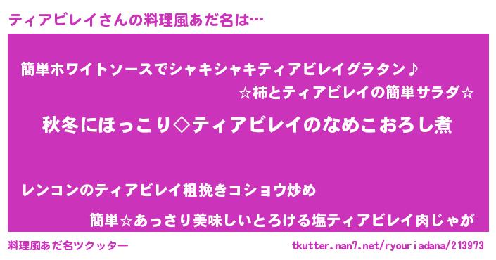 | 可愛いあだ名 | 『テっィぃー』『ティアビレイママ』 |