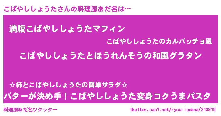 | 意味不明あだ名 | 『ニラ科こばやししょうた属』 |