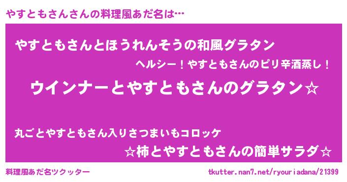 | 男性向けラノベタイトル風あだ名 | 『やはりやすともさんの青春ラブコメはまちがっている 』 |