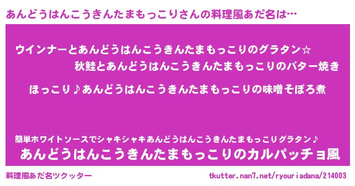 | 恥ずかしいあだ名 | 『プリティーあんどうはんこうきんたまもっこり』 |