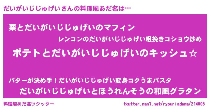 | 男性向けラノベタイトル風あだ名 | 『だいがいじじゅげいの嫁は女の子じゃないと思った?』 |