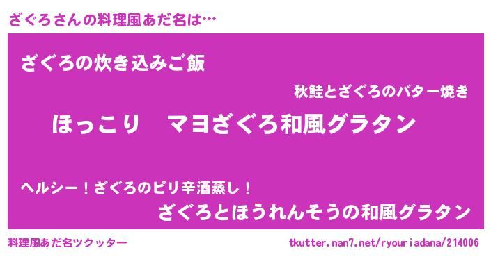 | 男性向けラノベタイトル風あだ名 | 『この素晴らしい世界にざぐろを!』 |