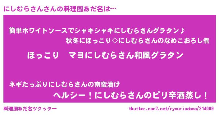 | 意味不明あだ名 | 『住所不定無職にしむらさん(91歳)』 |