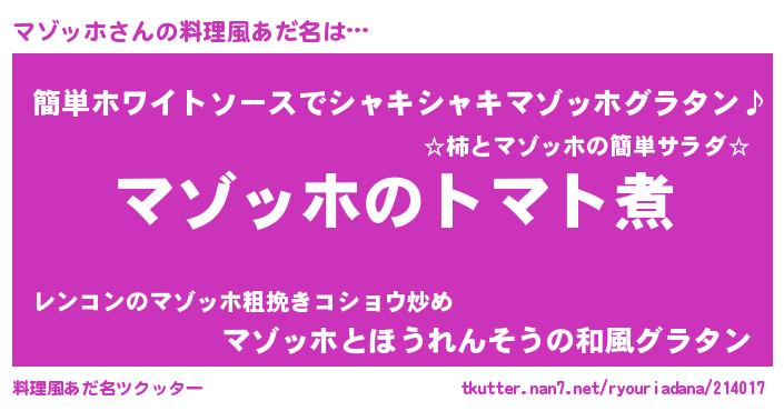 | ポケモン風あだ名 | 『マックウザ』『ヒマゾッホ』 |