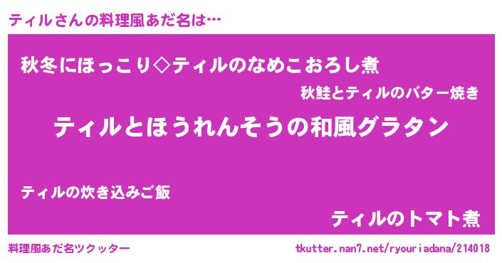 | ヘコむあだ名 | 『ティル(小並感)』『ティもー』 |