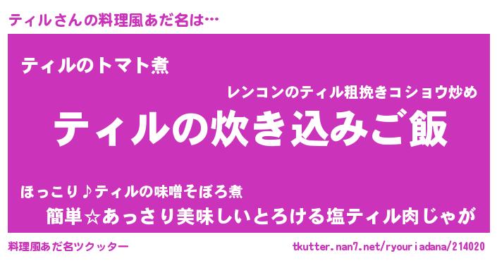 | 男性向けラノベタイトル風あだ名 | 『うちのティルが世界を掌握している!』 |