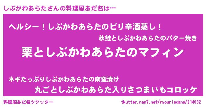 | ヘコむあだ名 | 『しぶかわあらた(遠い目)』『しぶもー』 |