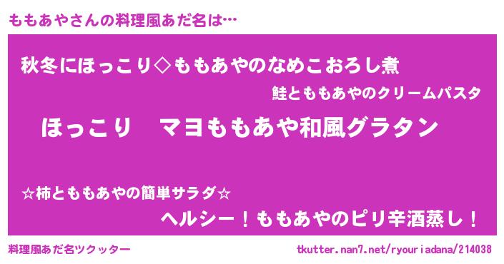 | ヘコむあだ名 | 『ももっふぃ~』『ももあや(笑)』 |