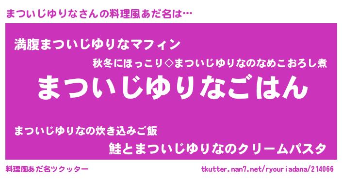 | ヘコむあだ名 | 『まついじゆりな(遠い目)』『まつっふぃ~』 |
