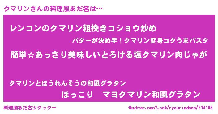 | ヘコむあだ名 | 『クマリン(爆)』『クマもー』 |
