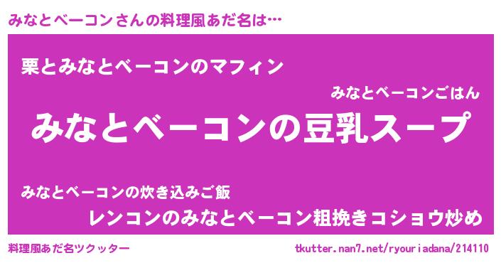 | 男性向けラノベタイトル風あだ名 | 『ダンジョンにみなとベーコンを求めるのは間違っているだろうか』 |