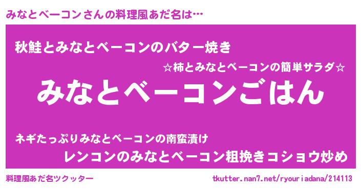 | 欧米人風あだ名 | 『トリンドルみなとベーコン』 |