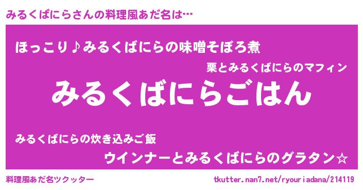 | 男性向けラノベタイトル風あだ名 | 『転生したらみるくばにらだった件』 |