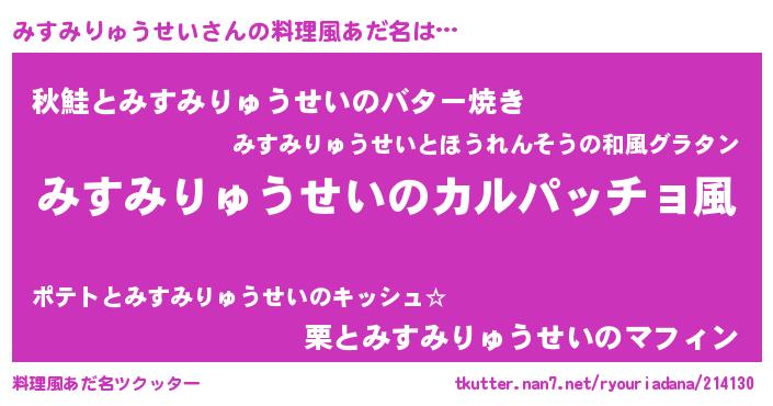 | 意味不明あだ名 | 『住所不定無職みすみりゅうせい(39歳)』 |