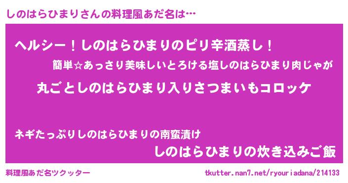 | ヘコむあだ名 | 『しのはらひまり(苦笑)』『しのにー』 |