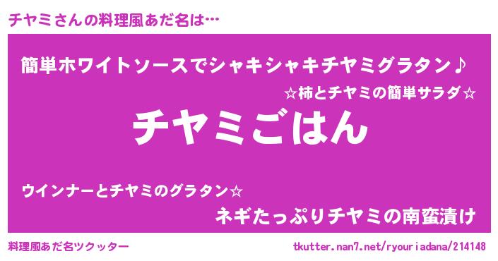 | 男性向けラノベタイトル風あだ名 | 『チヤミスレイヤー』 |