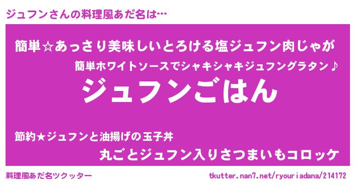 | 可愛いあだ名 | 『ジュぷりん』『ジュフンママ』 |