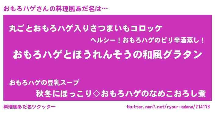 | ヘコむあだ名 | 『おもを』『おもろハゲ(震え声)』 |